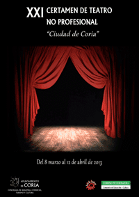 Vigésima Primera Edición del Certamen de Teatro No Profesional "CIUDAD DE CORIA 2013", organizado por el Excmo. Ayuntamiento de Coria y con la colaboración del Gobierno de Extremadura y la Red de Teatros de Extremadura, que tiene como objetivo promocionar a grupos de teatro no profesional de toda Espana, creando nuevos públicos.